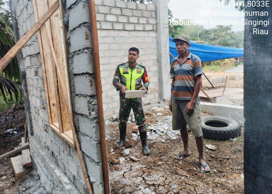 Riau,Kabarmiliter.id — Menciptakan Sinergitas TNI bersama rakyat, Babinsa Koramil 06/Cerenti Kodim 0302/Inhu Pratu Teguh Mulya membantu warga membangun rumah millik Usman salah satu warga Desa Pasar Inuman Kecamatan Inuman, Kabupaten Kuansing, Propinsi Riau.Pada Kamis (08/01/2026).