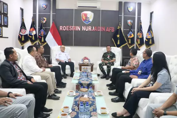 Riau,Kabarmiliter.id —- Komandan Lanud Roesmin Nurjadin Marsma TNI Abdul Haris, M.M.Pol., M.M.O.A.S., menerima audiensi Ketua Otoritas Jasa Keuangan (OJK) Provinsi Riau, Triyoga Laksito, di Ruang Audiensi Mako Lanud Roesmin Nurjadin, Rabu (10/12/2025). Pertemuan ini tidak hanya menjadi ajang silaturahmi, tetapi juga memperkuat koordinasi antara OJK dan Lanud Roesmin Nurjadin dalam berbagai aspek, khususnya terkait program sosial dan dukungan kepada masyarakat.