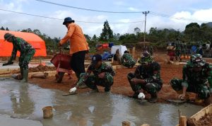 Lima Puluh Kota — Satgas TNI kembali melanjutkan pembangunan Rumah Hunian Sementara (Huntara) bagi masyarakat terdampak bencana alam di Nagari Koto Tinggi, Kecamatan Gunuang Omeh, Kabupaten Lima Puluh Kota, Minggu (21/12/2025).