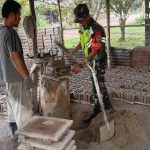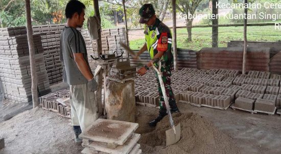 Ringankan beban kerja warga Desa binaan Babinsa Koramil 06/Cerenti bantu cetak Batako untuk pembuatan Rumah