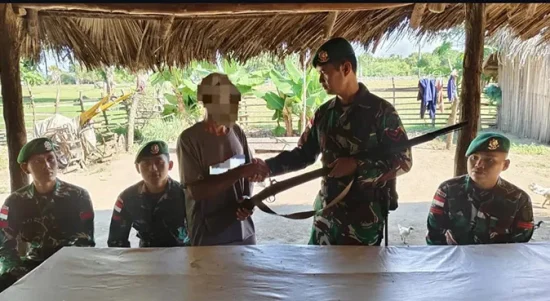 Warga Desa Bakuin Serahkan Senjata Api Sukarela Kepada TNI AD